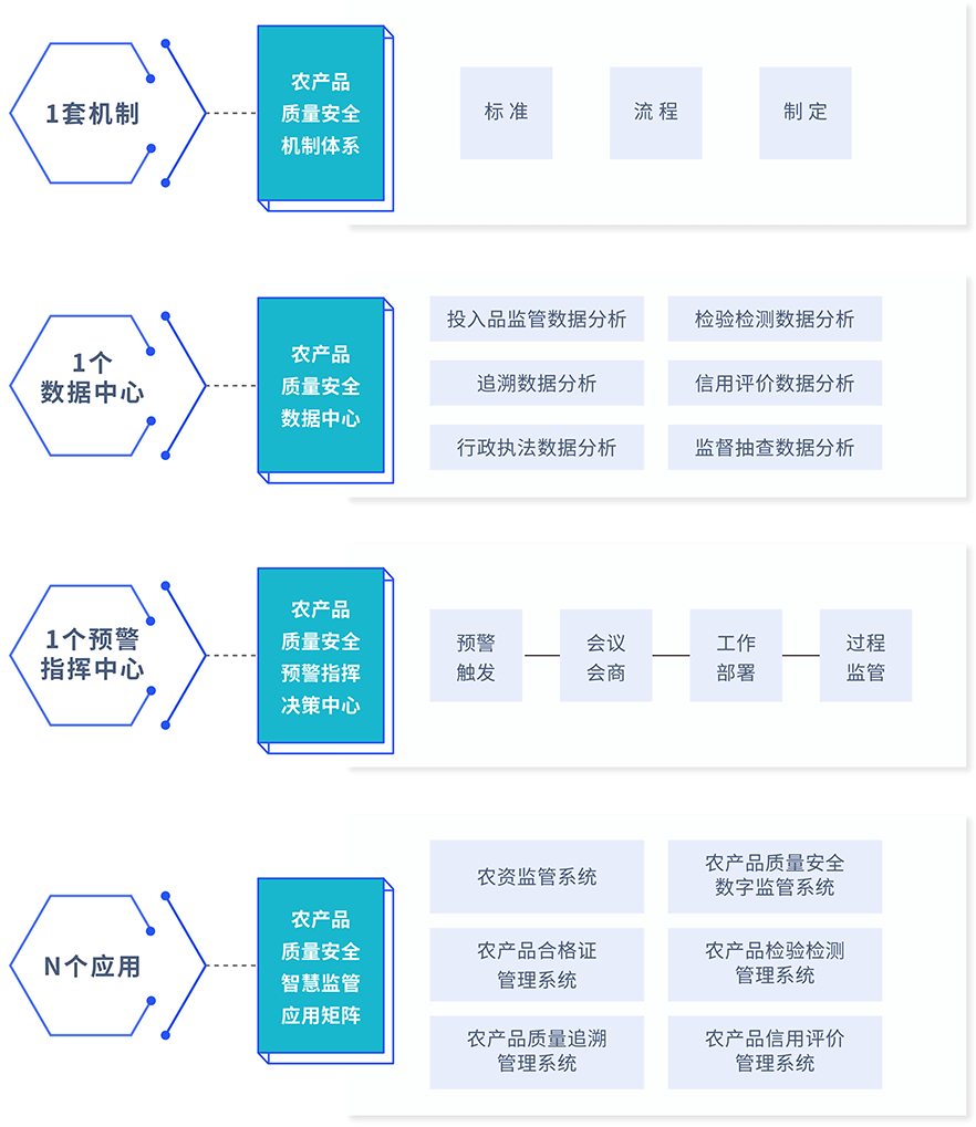 農(nóng)業(yè)農(nóng)村部《2020年農(nóng)產(chǎn)品質(zhì)量安全工作要點》明確提出,各地要加強風(fēng)險防范、強化執(zhí)法監(jiān)管、健全標(biāo)準(zhǔn)體系、完善監(jiān)管制度、提高監(jiān)管能力。天演維真1+1+1+N智慧農(nóng)安解決方案,按照“智慧、高效、實時、聯(lián)防、聯(lián)控”的總體要求,構(gòu)建覆蓋縣、鄉(xiāng)鎮(zhèn)(街道)、村三級的“智慧監(jiān)管”網(wǎng)格體系,形成全區(qū)域全面推廣、互聯(lián)互通、高效運作的運行機制,實現(xiàn)監(jiān)管履職網(wǎng)格化、監(jiān)管手段智能化、監(jiān)管過程透明化、監(jiān)管評價實時化。
